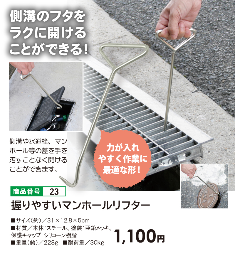 ■サイズ(約)/31×12.8×5cm ■材質/本体:スチール、 塗装:亜鉛メッキ、 保護キャップ: シリコーン樹脂 ■重量 (約)/228g ■耐荷重/30kg