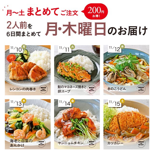 【974】Meal One 6日間コース2人用 11/10(月)~11/15(土)]