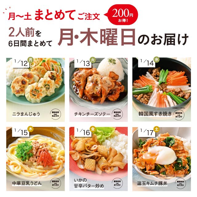 【974】Meal One 6日間コース2人用 1/12(月)~1/17(土)]