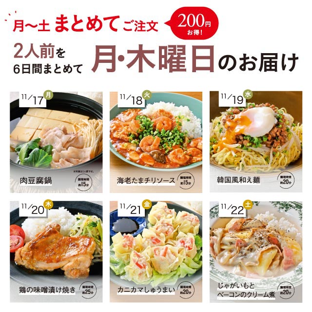 【974】Meal One 6日間コース2人用[11/17(月)~11/22(土)]