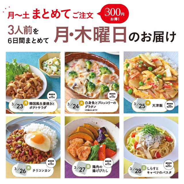 【975】Meal One 6日間コース【3人用】[3/23(月)~3/28(土)]