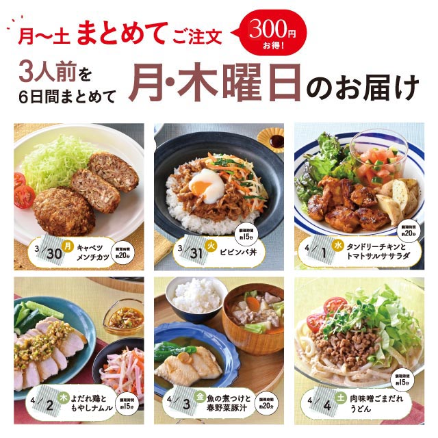 【975】Meal One 6日間コース【3人用】[3/30(月)~4/4(土)]