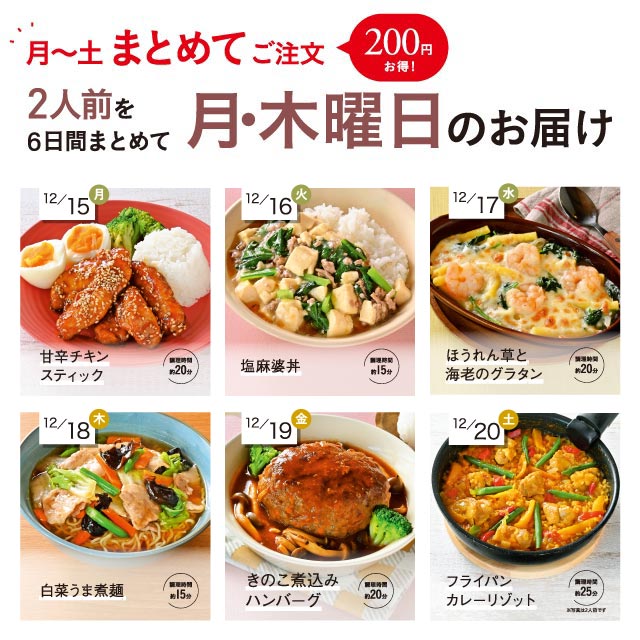 【974】Meal One 6日間コース2人用[12/15(月)~12/20(土)]