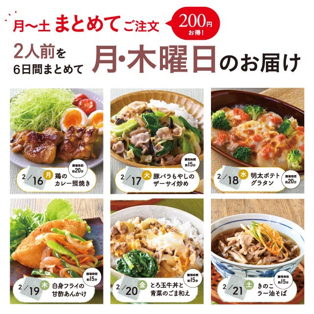 【975】Meal One 6日間コース【3人用】[2/16(月)~2/21(土)]