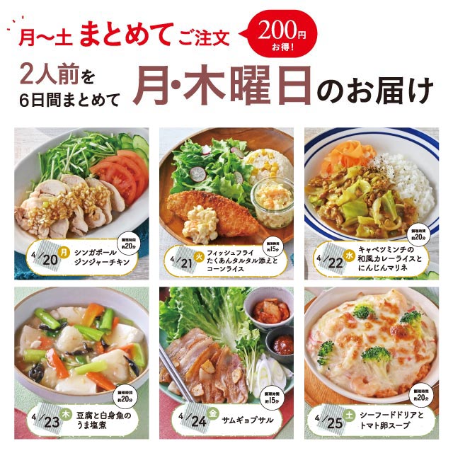 【975】Meal One 6日間コース【3人用】[4/20(月)~4/25(土)]