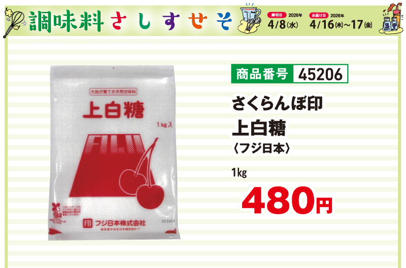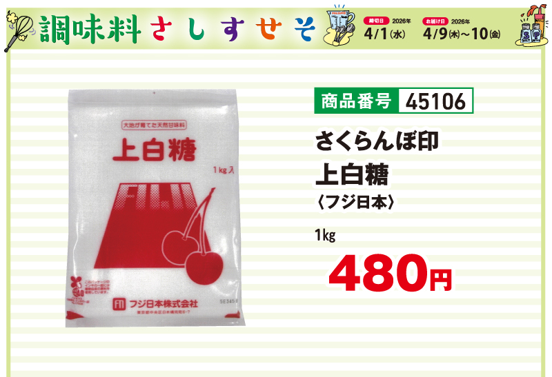 さくらんぼ印 上白糖 1kg【お届け予定日:4月9日(木)】