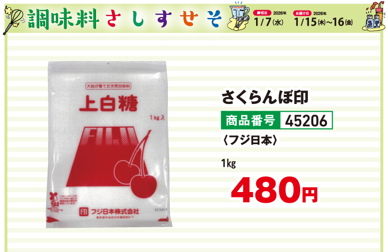さくらんぼ印 上白糖 1kg【お届け予定日:1月15日(木)~1月16日(金)】