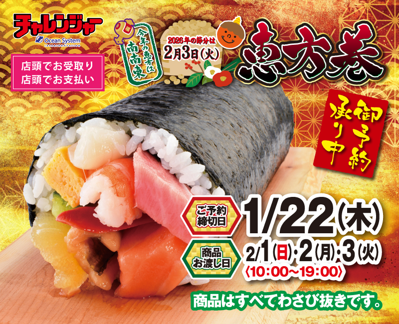 ご予約頂いた商品はチャレンジャー店舗のサービスカウンターでのお支払い・お受け取りとなりますので予めご了承ください。